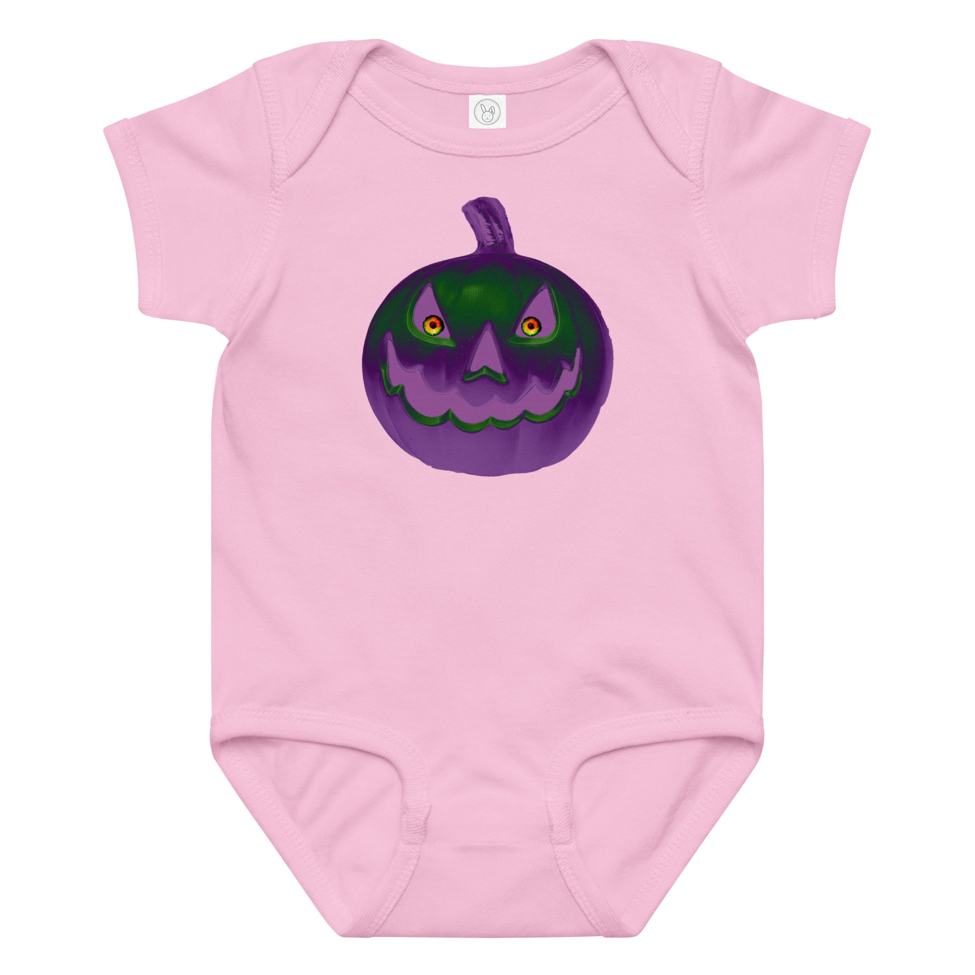Baby Jersey Onesie - Jack O Lantern Retro Purple Glow