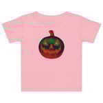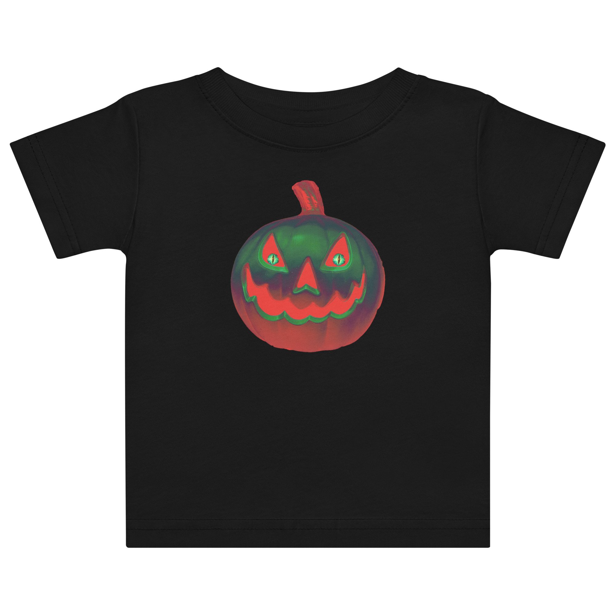 This Jack O Lantern gives all the creepy jitters with its unsettling gaze that glows in retro orange and green. This frightening look will scare off any ghouls or evil spirits coming after your baby! Protect your baby at all cost and use this baby T-shirt to save the innocent and while you're saving your babe grab a few other products with one of our exclusive Jack O Lantern designs for you and the rest of your family!!
