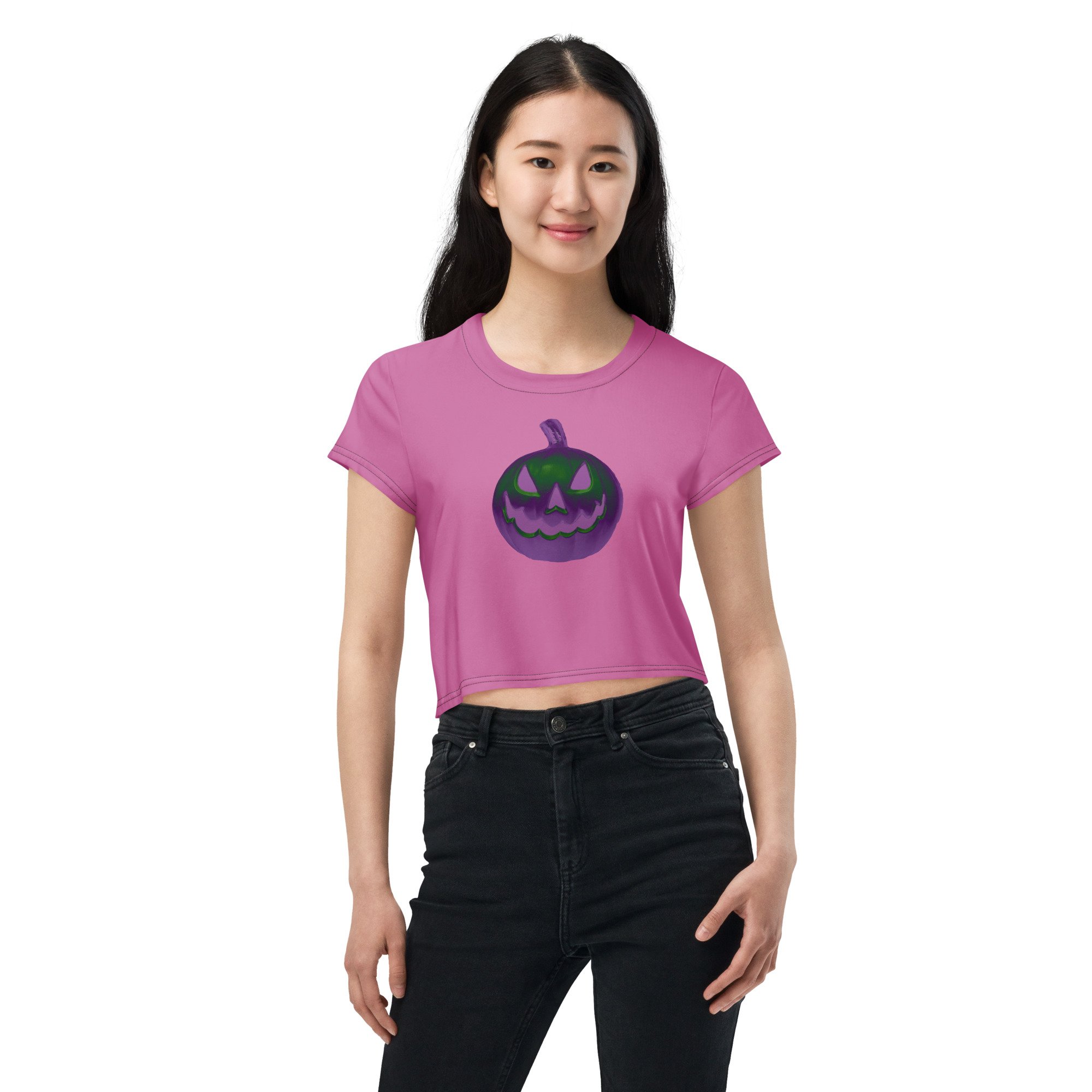 Crop Tee - Jack O Lantern Retro Purple Glow (Deep PInk)