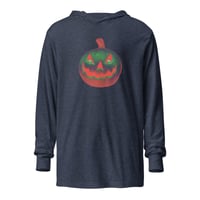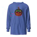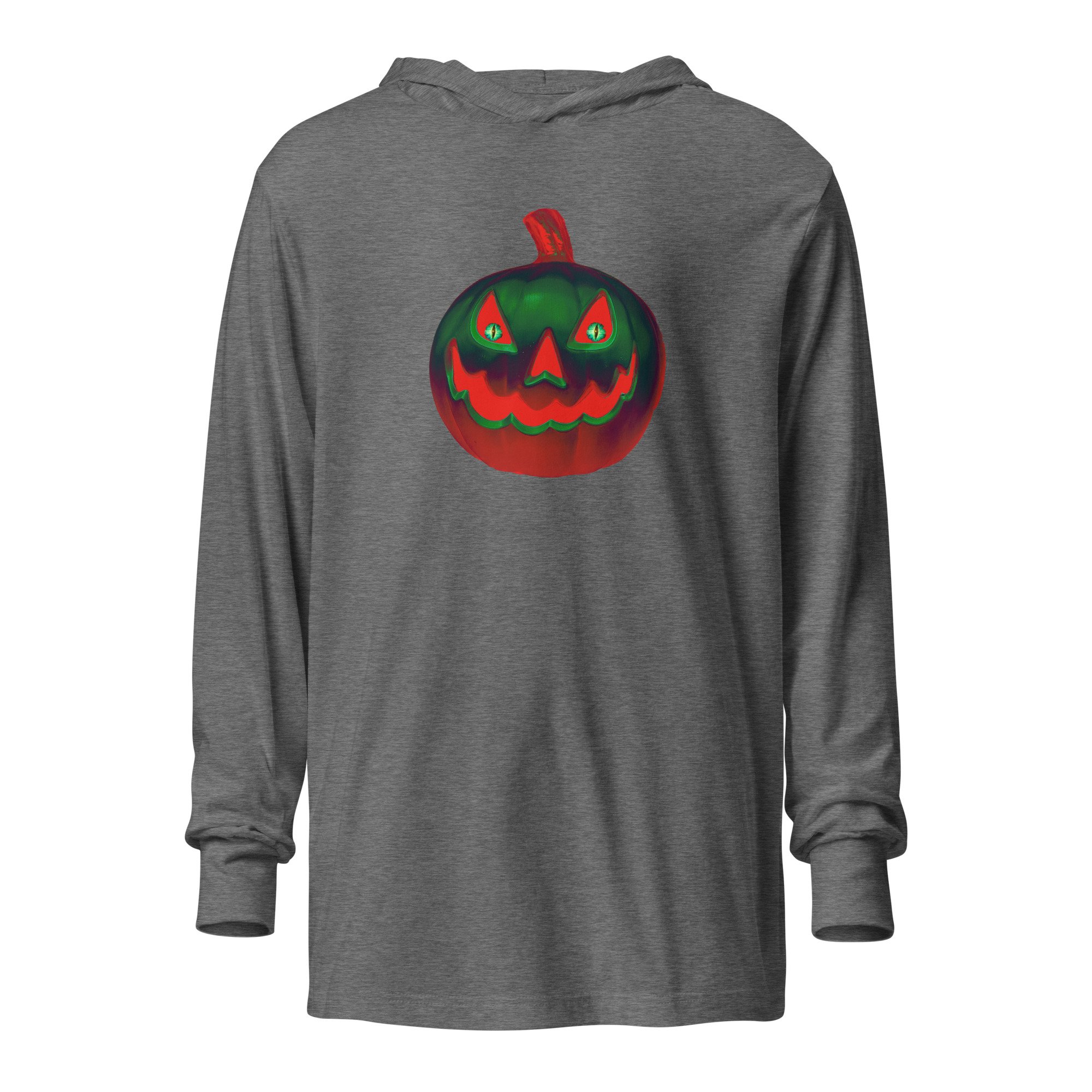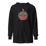 Long Sleeve Hoodie Tee (Adult M/F) - Retro Jack O Lantern Orange Green Glow