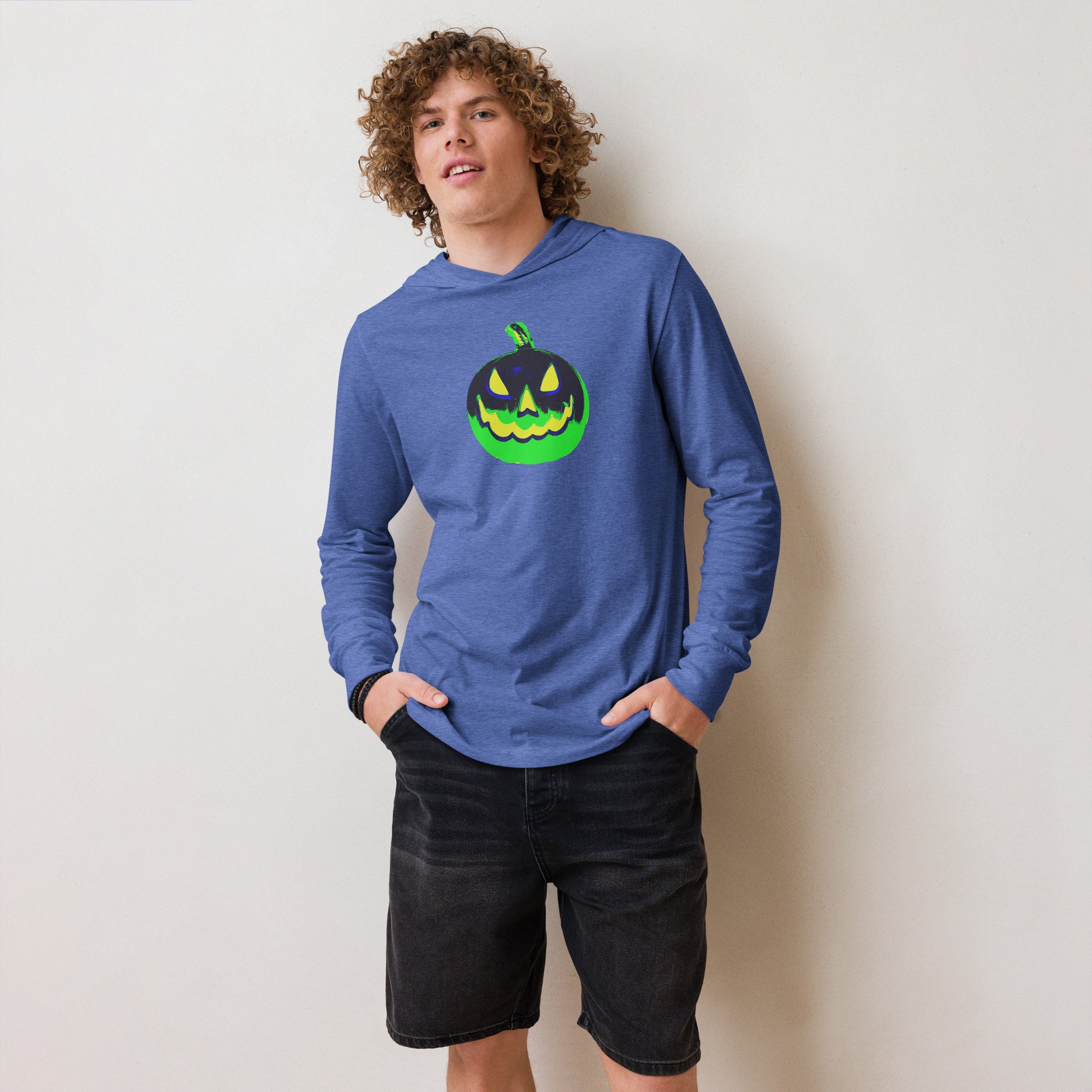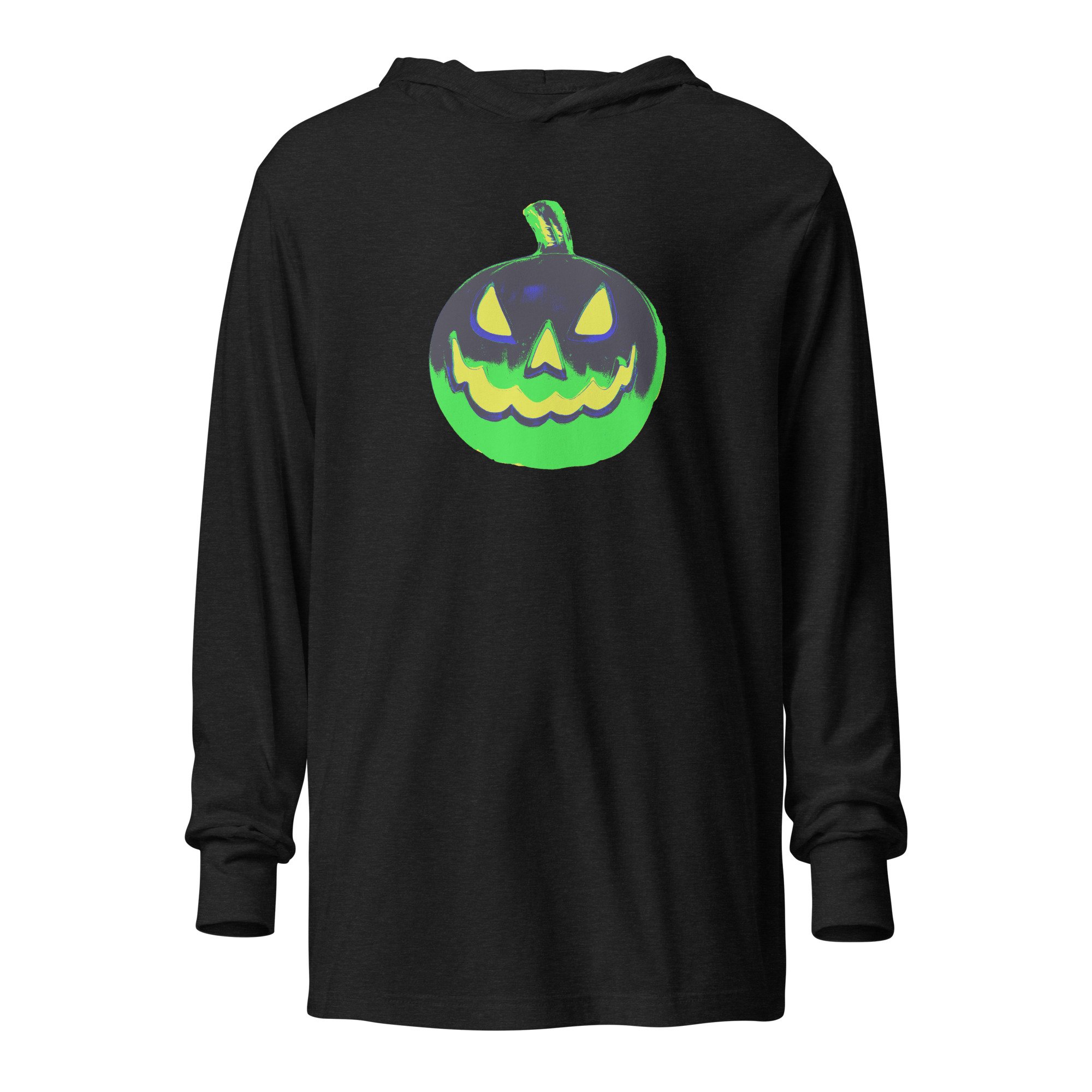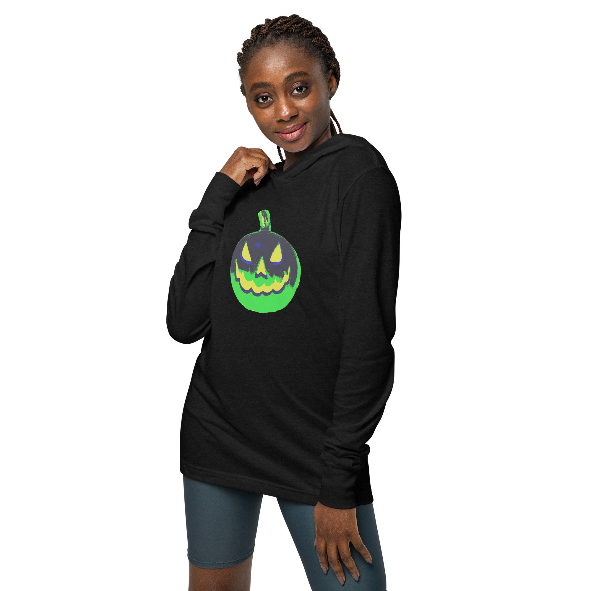 Long Sleeve Hoodie Tee (Adult M/F) - Vintage Jack O Lantern Green-BLK