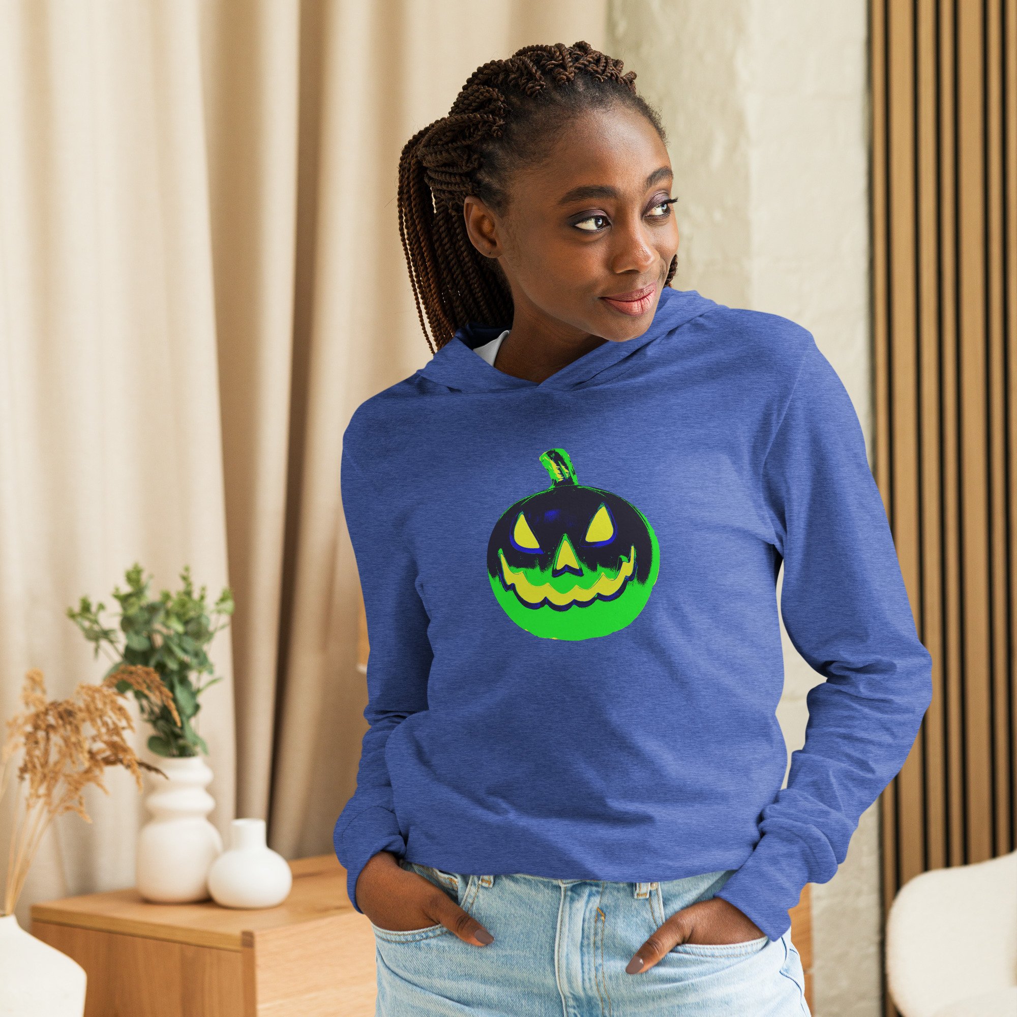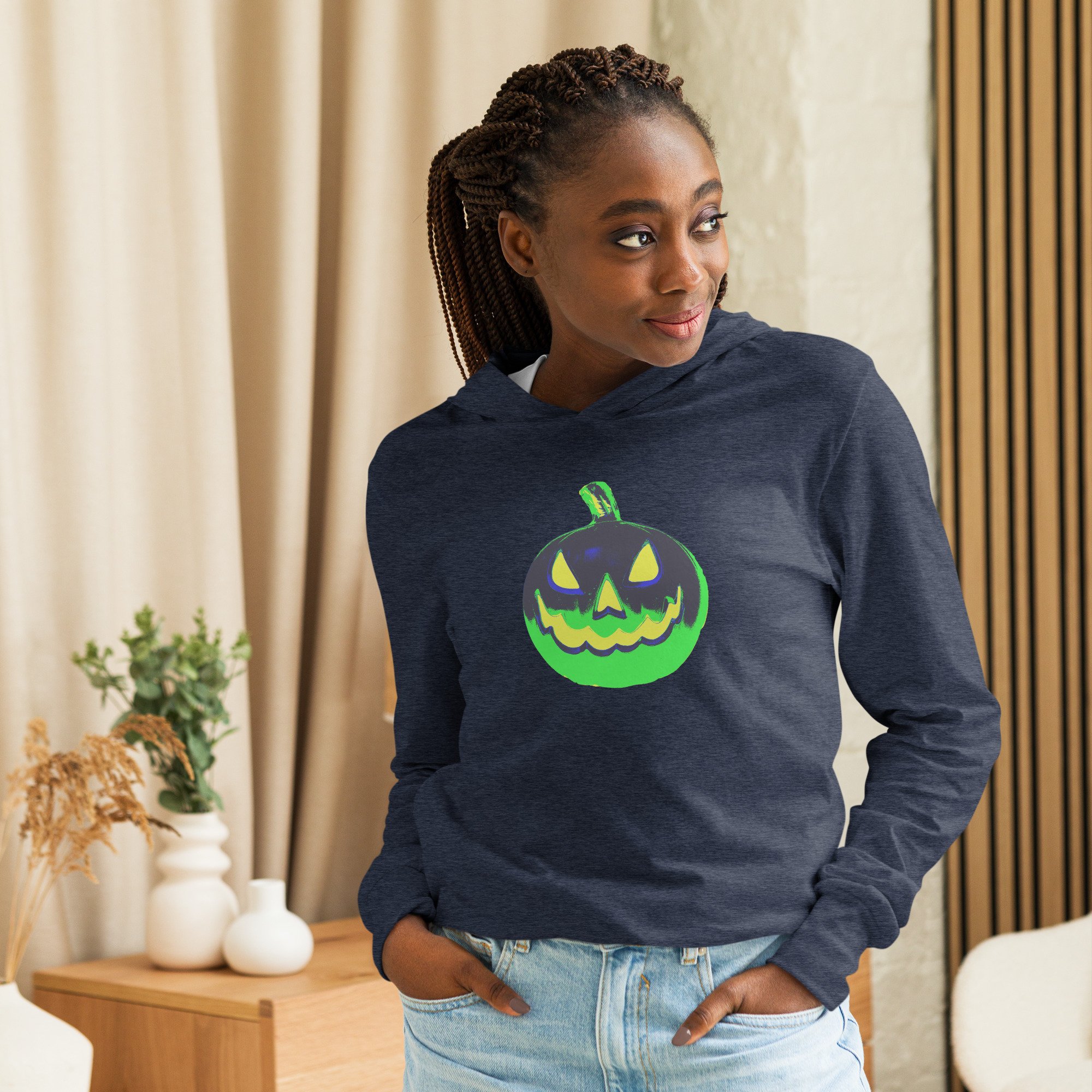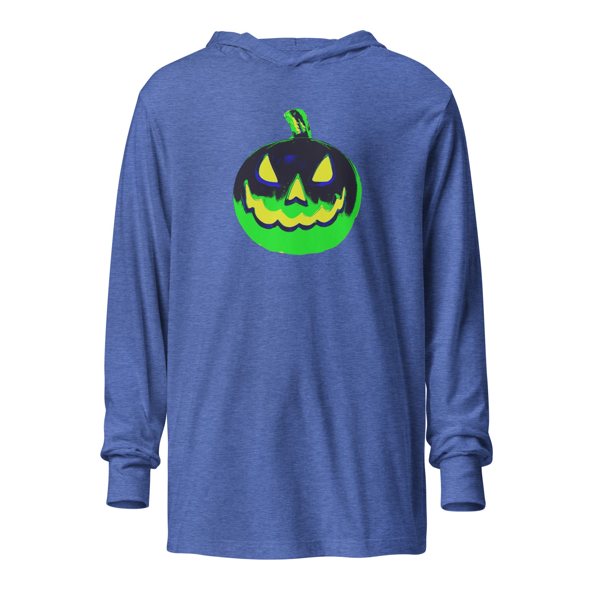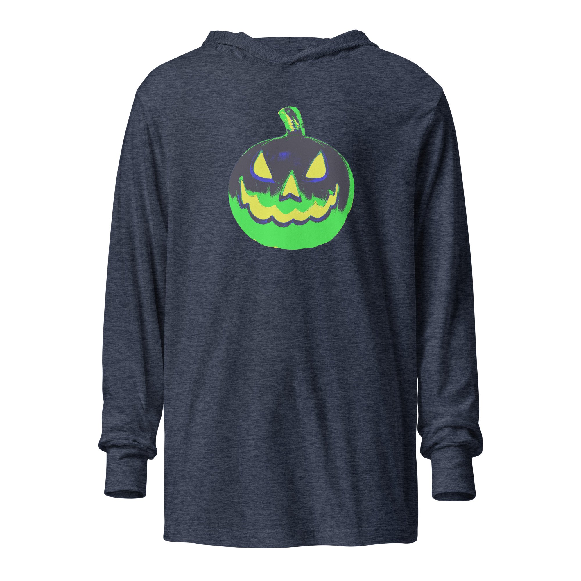 Long Sleeve Hoodie Tee (Adult M/F) - Vintage Jack O Lantern Green-BLK