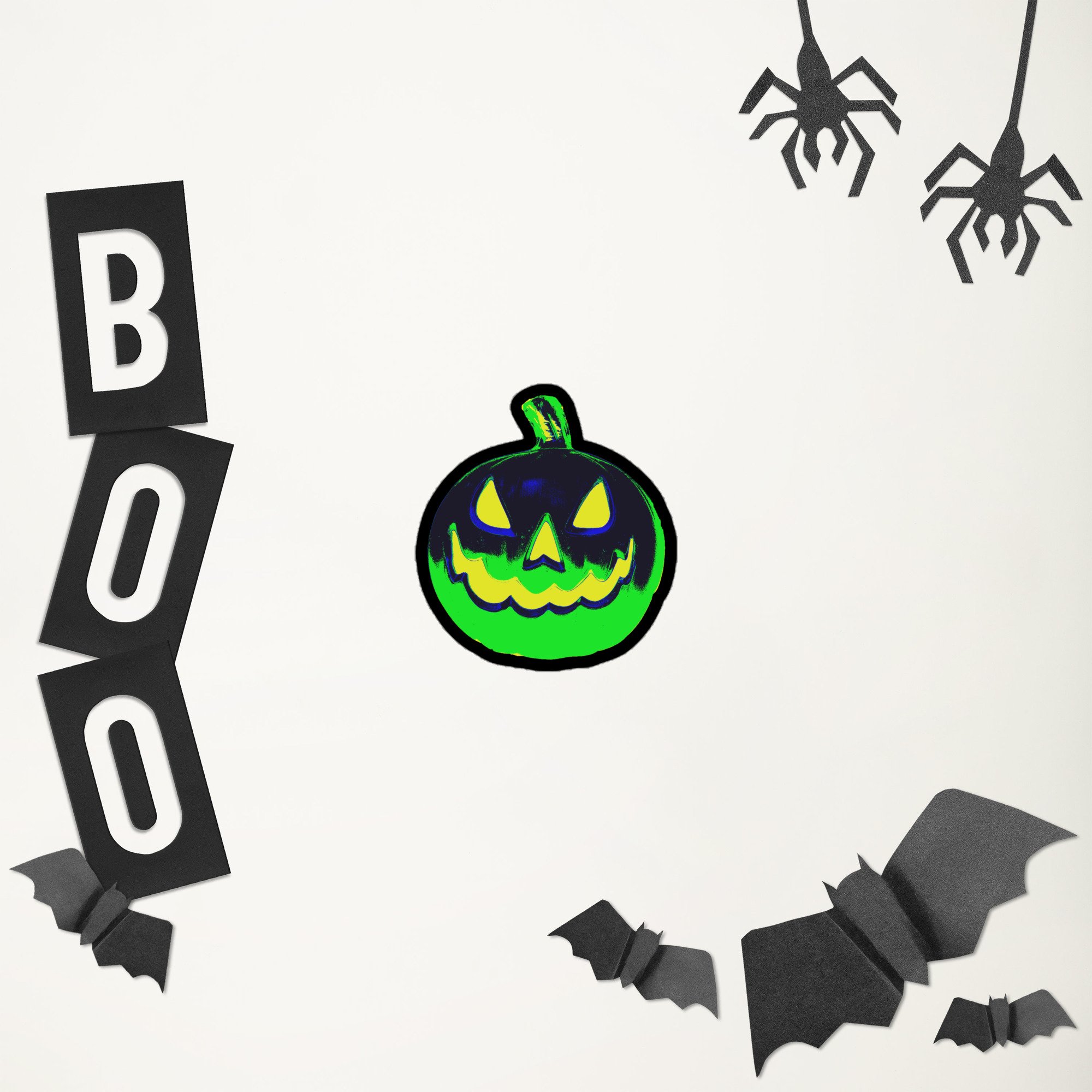A new twist to the classic Jack O Lantern! I call this the vintage Jack O Lantern in Green-Black, using a limited color palette with contrasting colors highlights the black facial features giving it a bit more creepiness. Check out my design on other products to mix and match with the entire family!