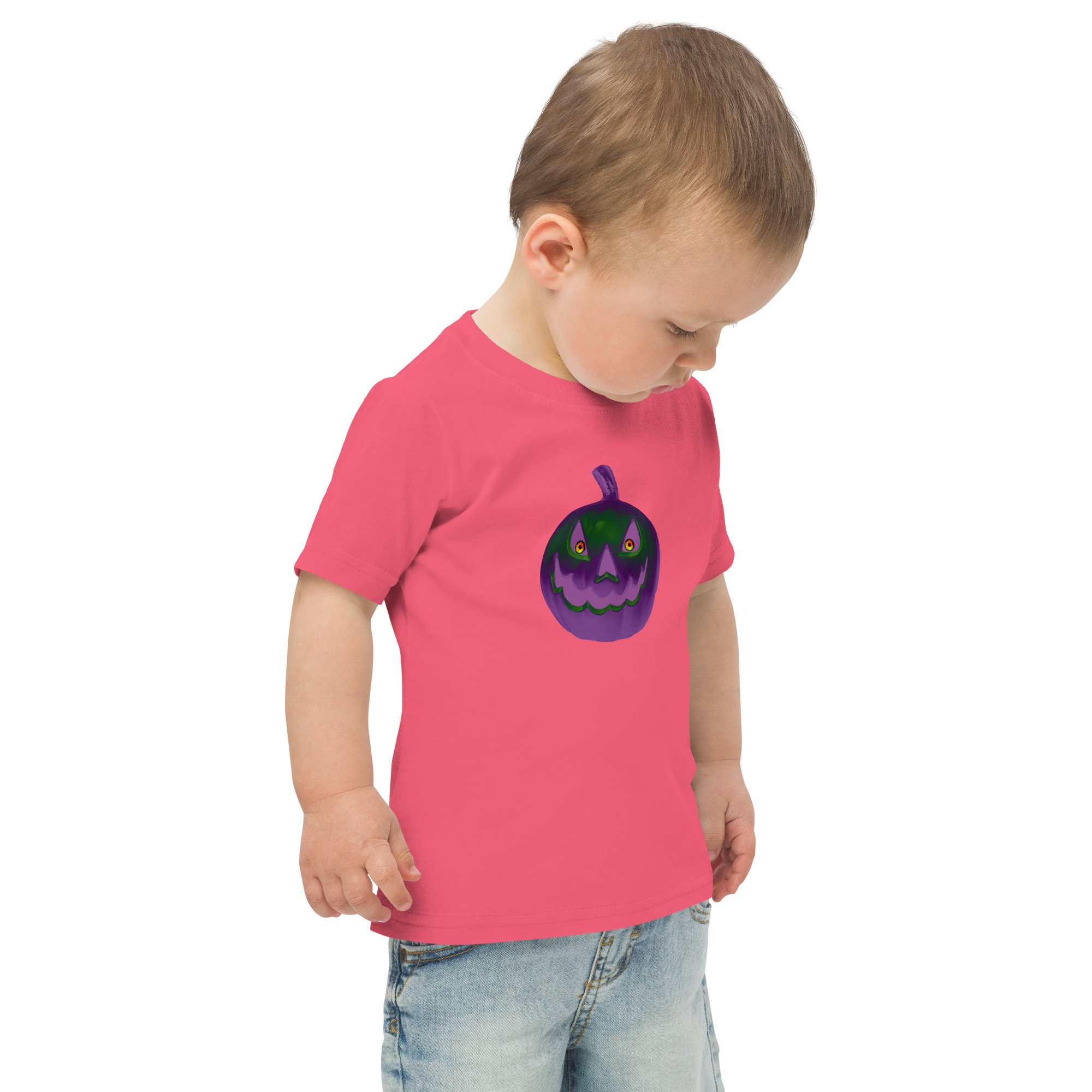 Toddler Jersey T-shirt - Jack O Lantern Retro Purple Glow