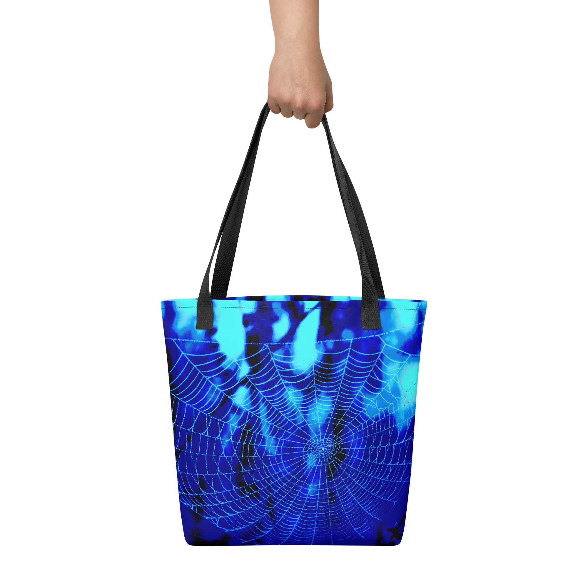 About this design, Blue Twilight Web is a spiderweb I photographed early one morning on the side of the road. The tall weeds on the side of the road glistened with dew drop spiderwebs in the morning light. It was a fascinating sight to see nature in its most beautiful state of being.