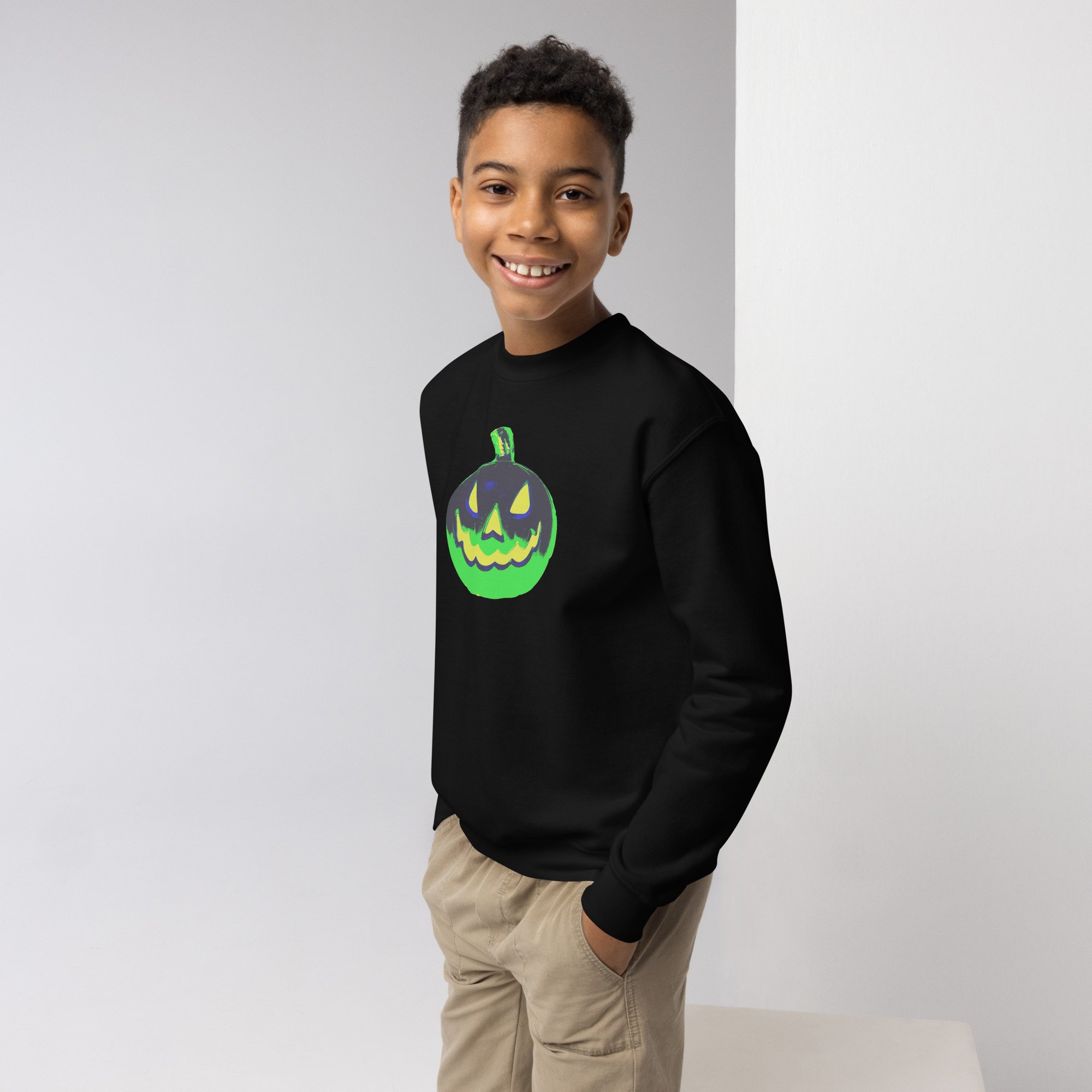Youth Crewneck Sweatshirt - Jack O Lantern Vintage Green-Black