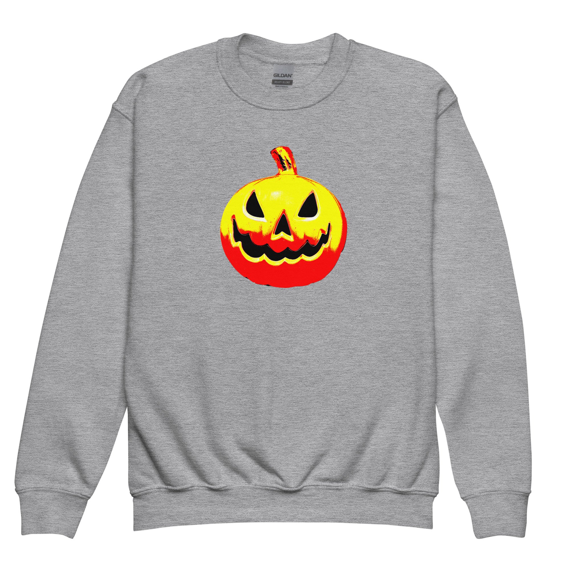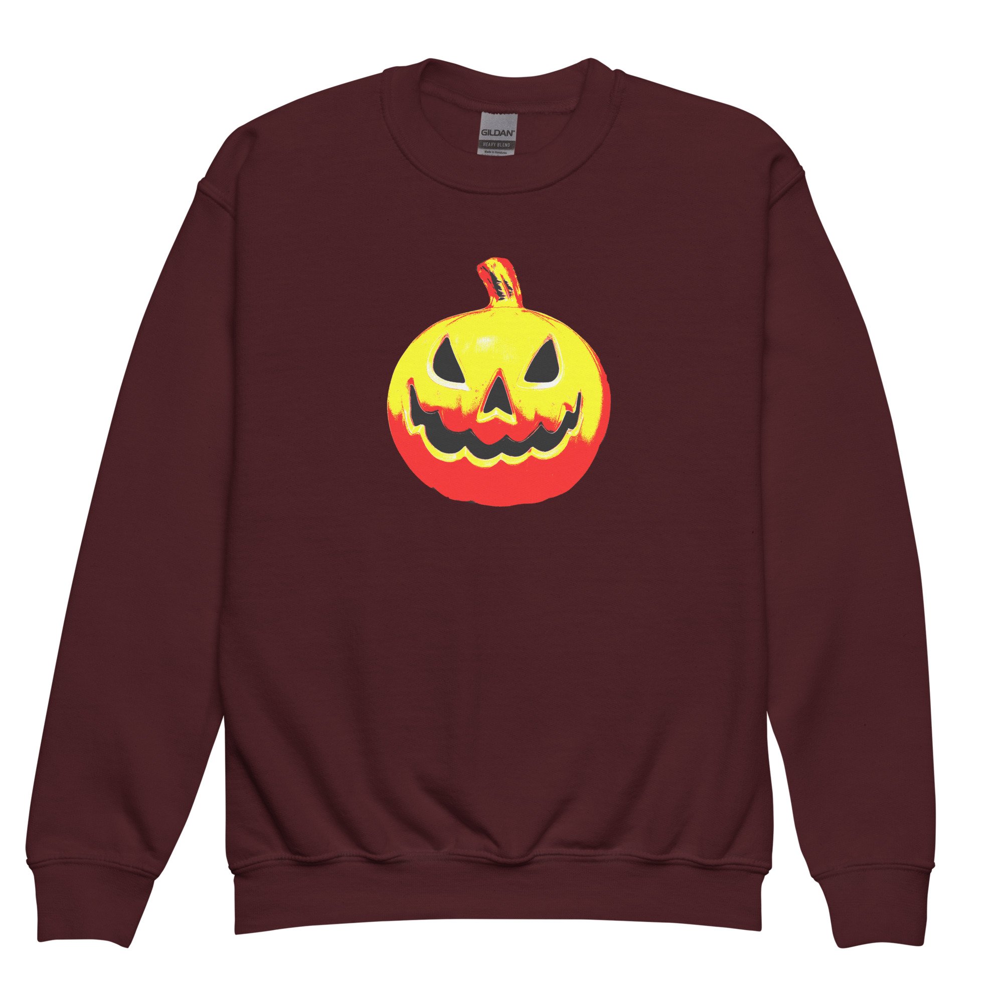 Youth Crewneck Sweatshirt - Jack O Lantern Vintage Red-Yellow
