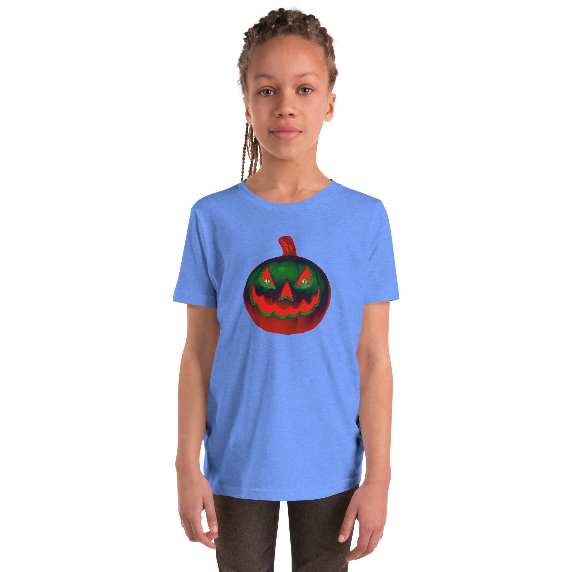 Youth Short Sleeve T-Shirt - Jack O Lantern Retro Orange Glow